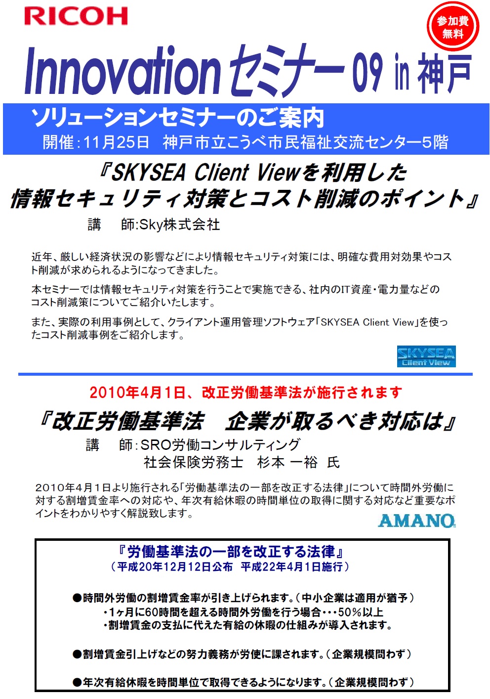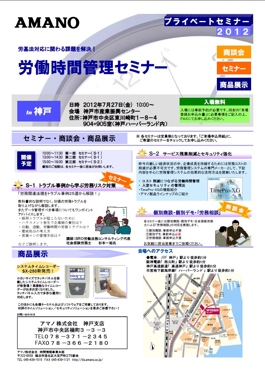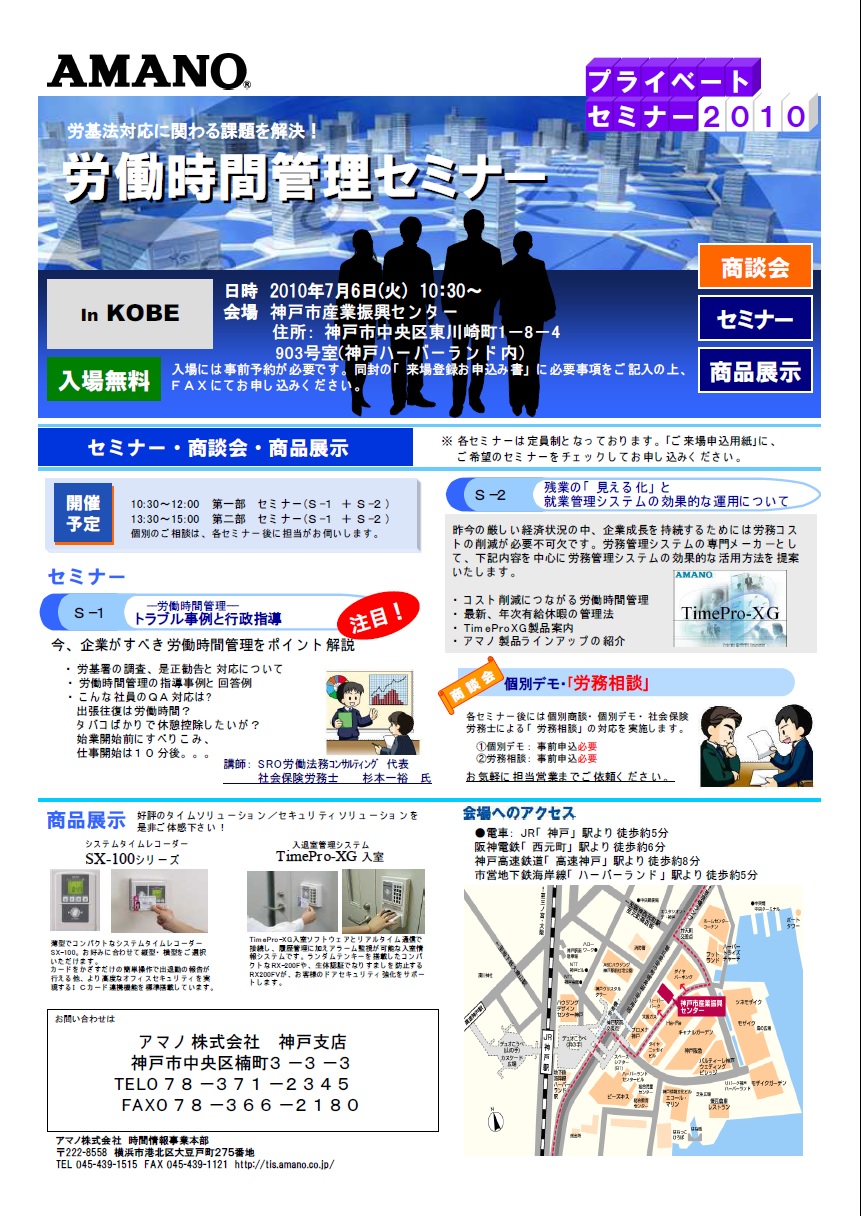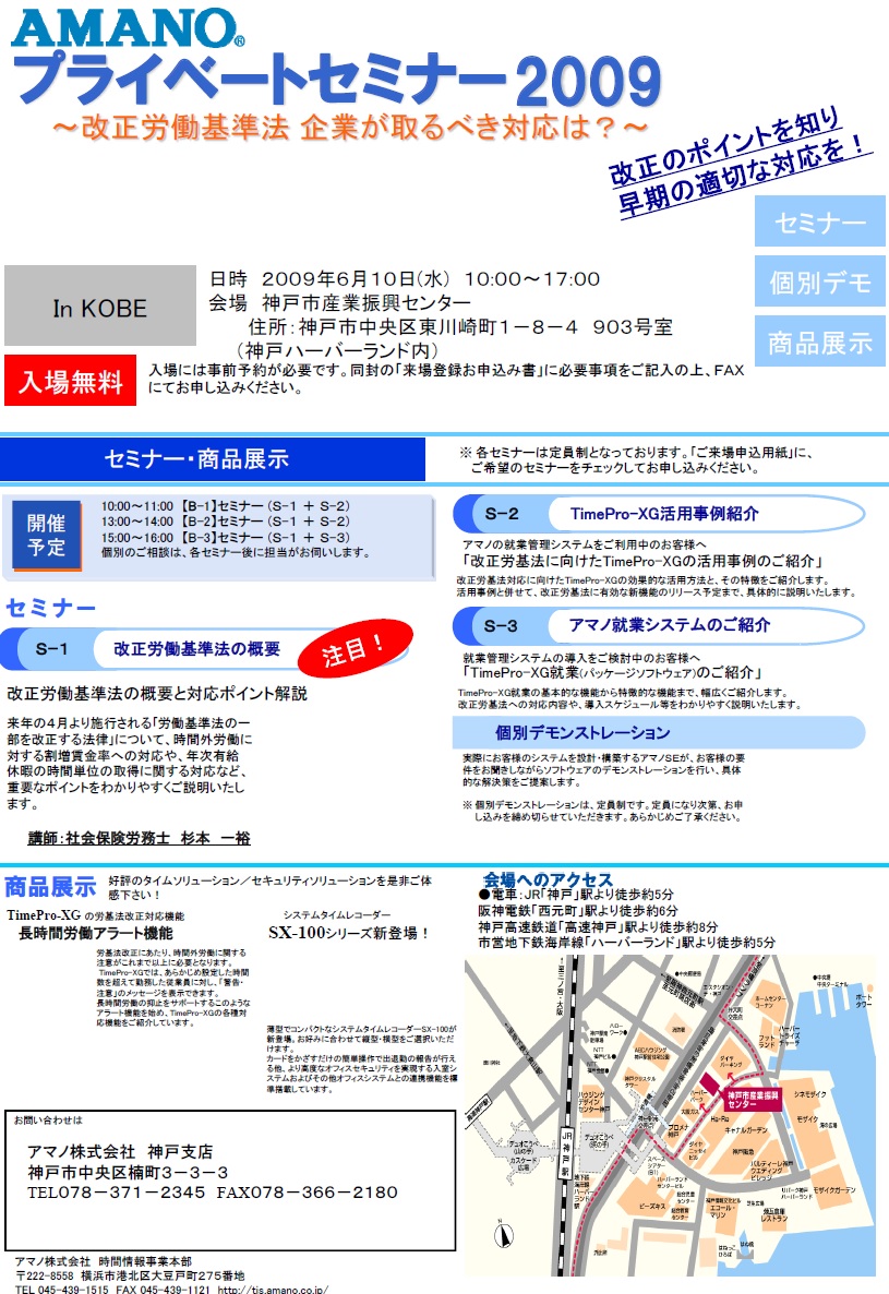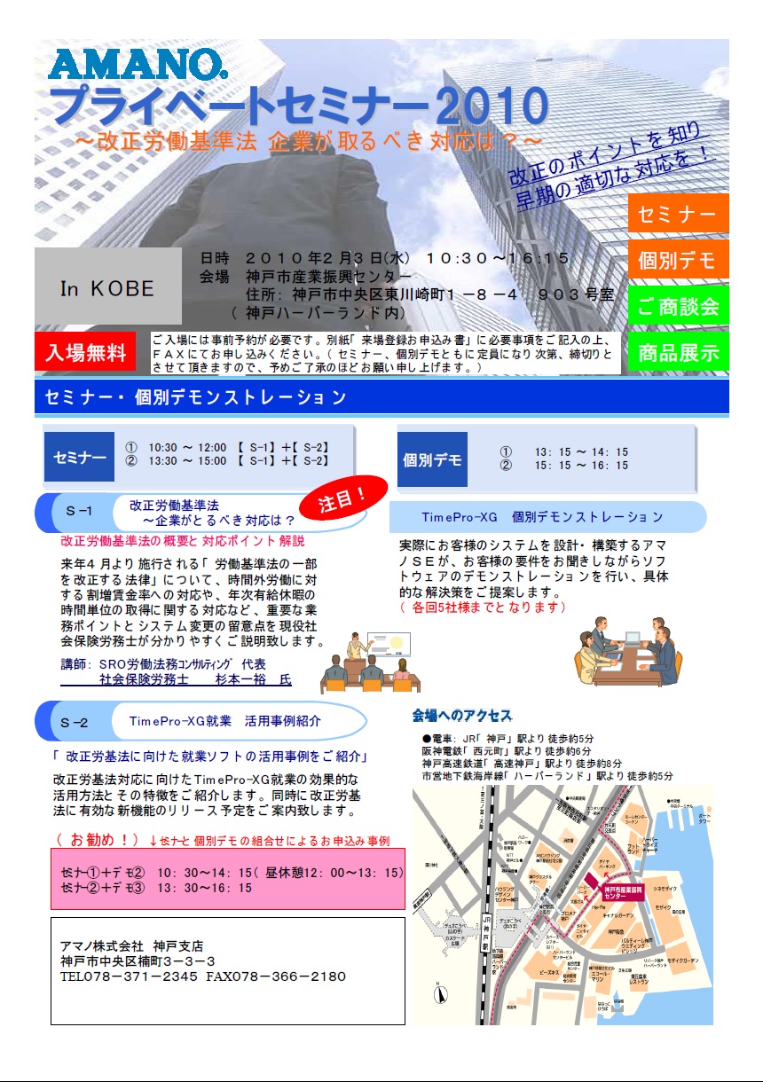 神戸市産業振興センター、神戸ハーバーランド、三宮研修センター、尼崎商工会議所、こうべ市民福祉交流センター、姫路商工会議所、小野市うるおい交流館エクラ、ホテルホップイン