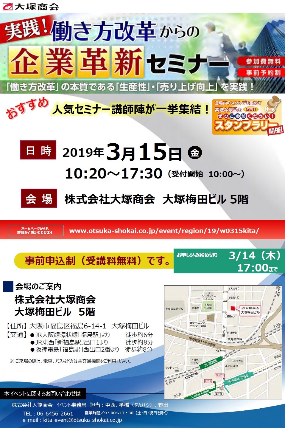 グランキューブ大阪、ANAクラウンプラザホテル大阪、国際会議場、ヒルトン大阪、ヒルトンプラザ、ホテルモントレ、ホテルアウィーナ大阪、梅田ダイビル、梅田スカイビル、グランフロント大阪、立命館いばらきフューチャープラザ、ハービスPLAZA、アマノ大阪支店、サイボウズ大阪オフィス、富士通デジタル・トランスフォーメーション大阪、富士通関西システムラボラトリ、大塚商会関西支社、大塚梅田ビル、NEC関西ビル、梅田阪急ビルオフィスタワー、つるやゴルフ本店ビル、AP大阪梅田茶屋町、大阪産業創造館、大阪府工業協会