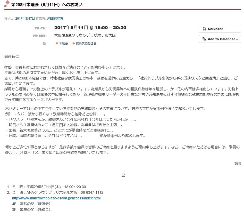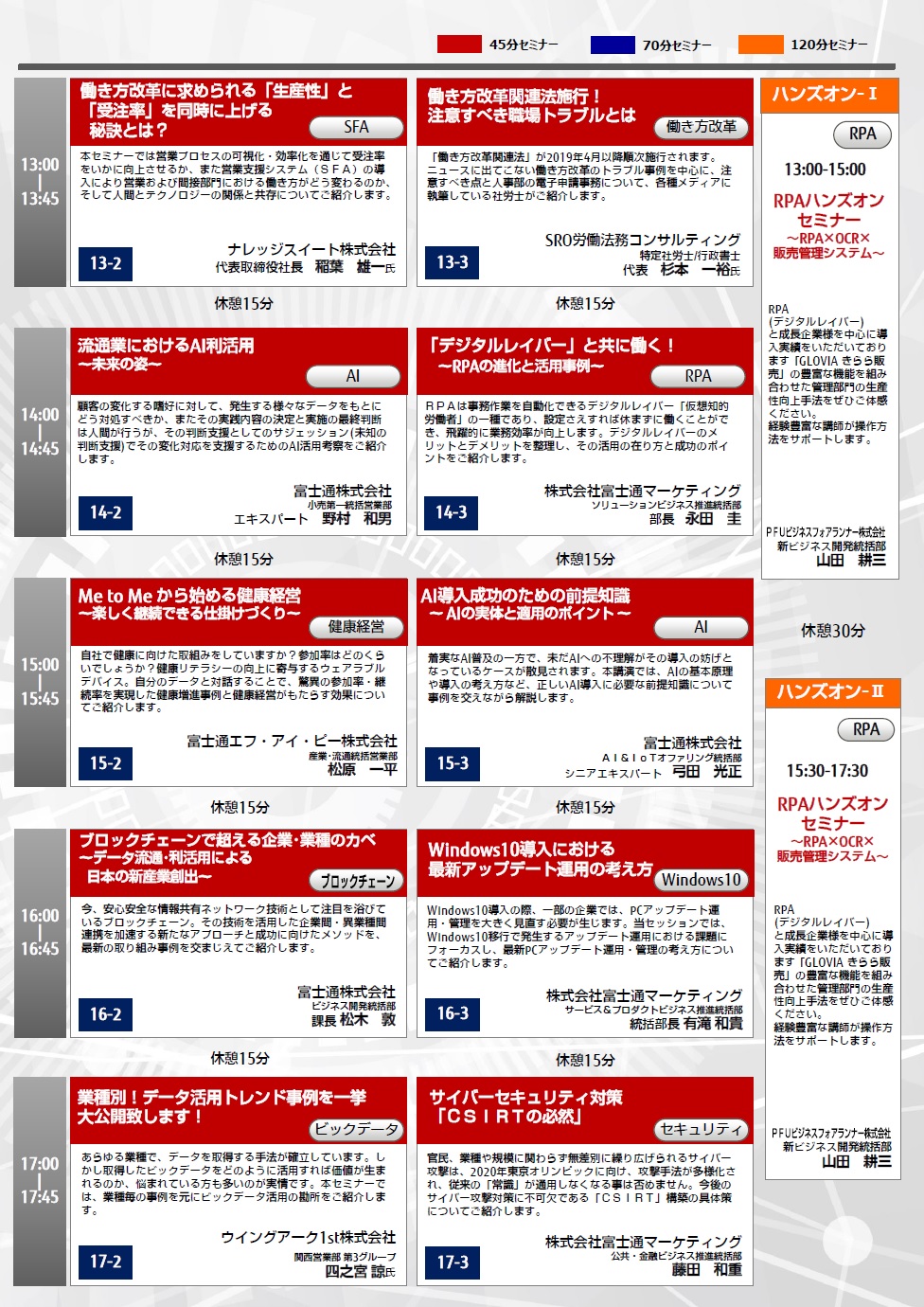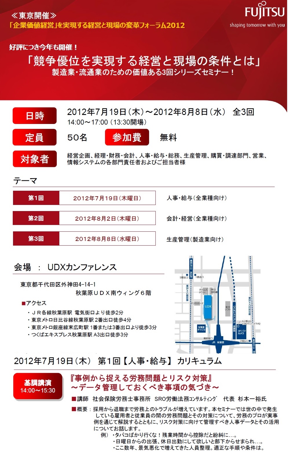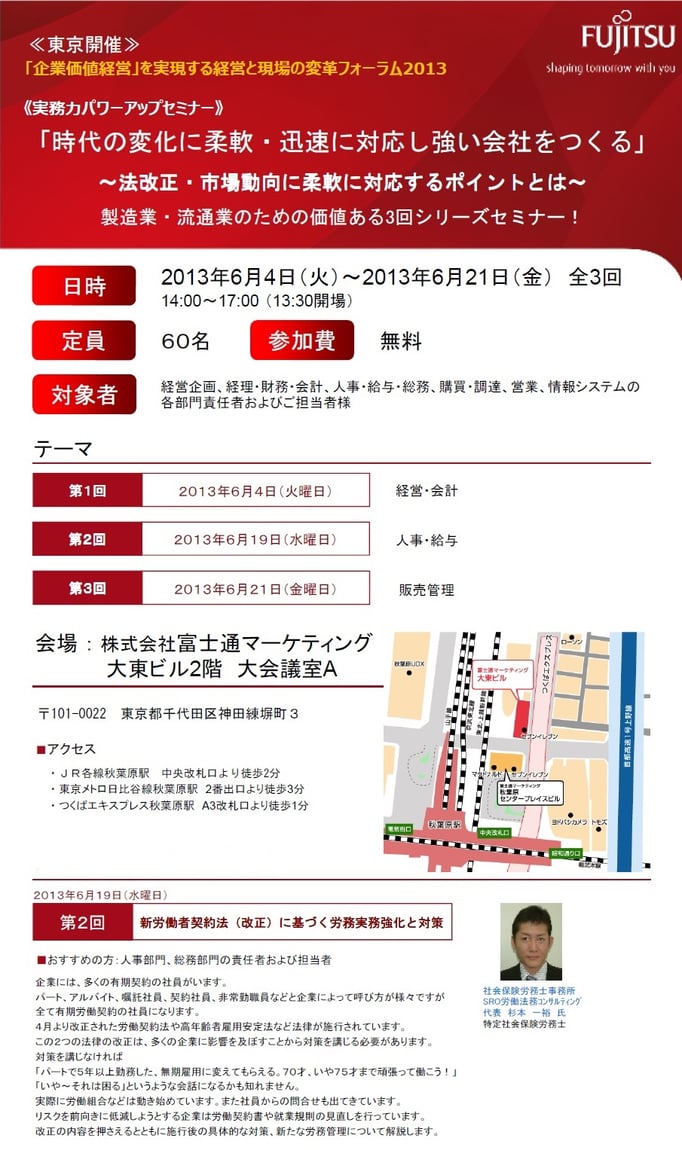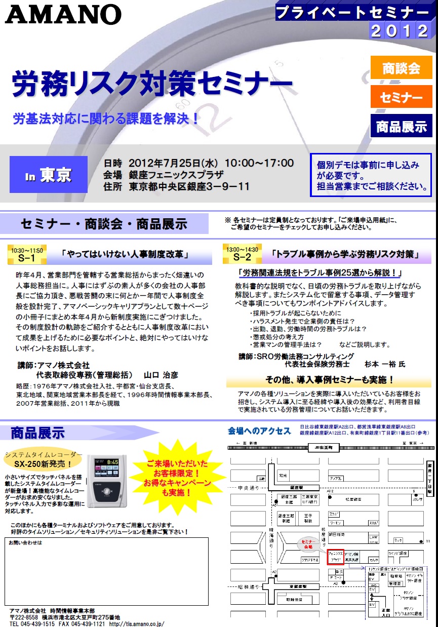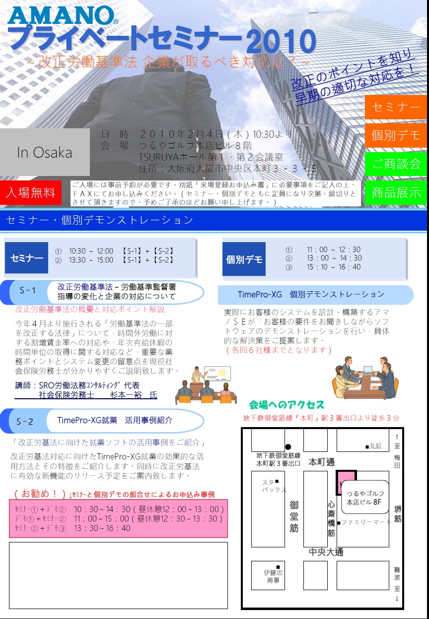品川プリンスホテル、明治記念館、新宿住友ビル、虎ノ門ヒルズフォーラム、銀座フェニックスプラザ、秋葉原UDXカンファレンス、ベルサール東京日本橋、秋葉原センタープレイスビル、大東ビル、秋葉原コンベンションホール、世界貿易センタービル、銀座紙パルプ会館、コングレスクエア日本橋、トレランス銀座ビルディング、パシフィコ横浜