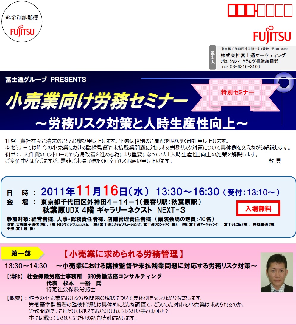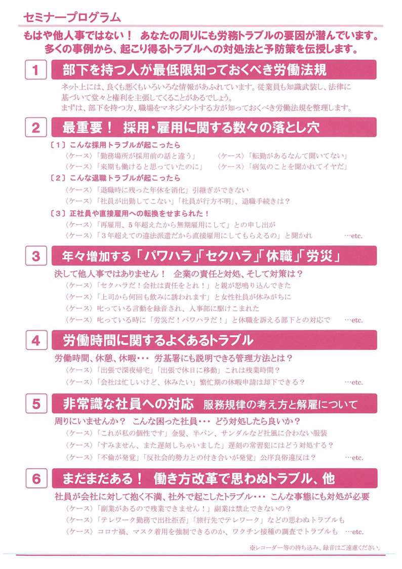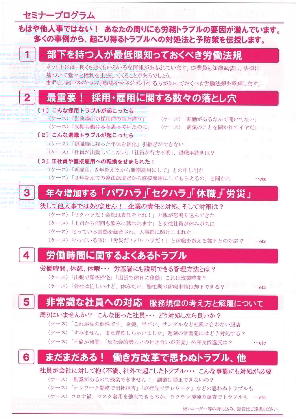 問題が起こった時に、指導や叱る根拠が「どこに書いてあるのか」と、もめるケースが多くあります。根拠を答えられる就業規則になっているでしょうか?なぜ、自社の条文の書き方ではいけないのかを理解していただきながら見直していきます。基本的に現地指導で行います。指導当日に提示頂いてもOKです。