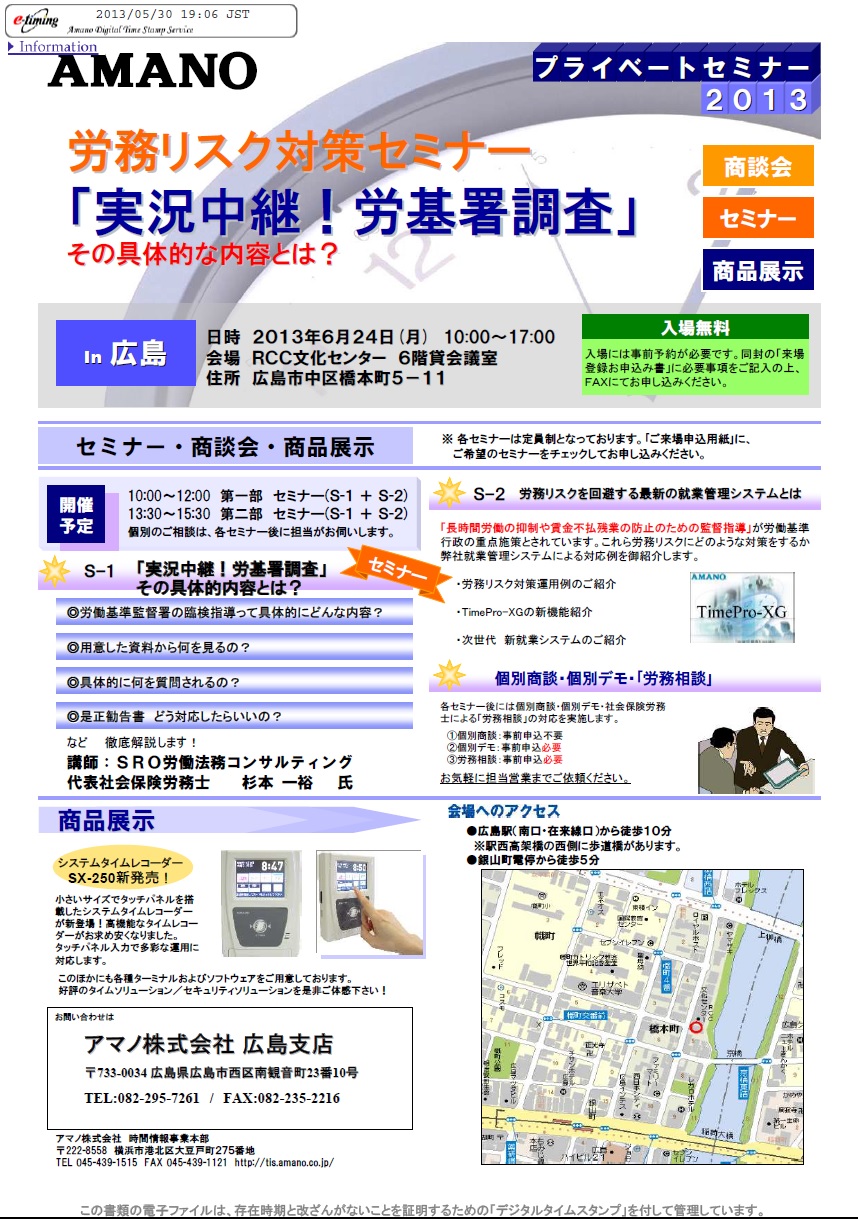 RCC文化センター、ANAクラウンプラザホテル広島、広島県産業会館、広島商工会議所、ホテルセンチュリー、高松テルサ、山口グランドホテル、徳山商工会議所